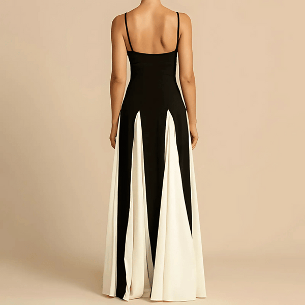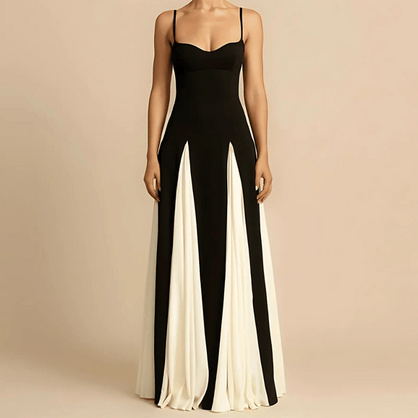 Cette robe maxi bicolore à la silhouette fluide allie chic et raffinement, faisant d'elle un choix de premier ordre pour vos événements formels. Spécialement conçue pour les femmes, elle met en valeur la silhouette tout en apportant une touche de grâce et de confiance à votre collection de vêtements.