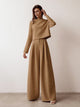 - Silhouette flatteuse : La coupe décontractée du haut et des pantalons larges crée un contour élégant.