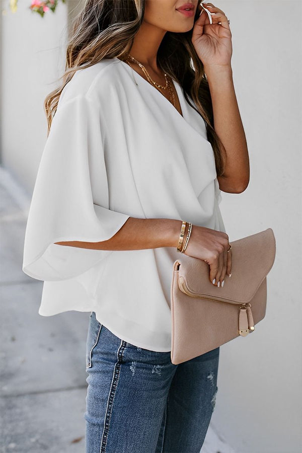 Blouse en chiffon pour femmes - top léger drapé, polyvalent et chic pour le casual ou les soirées