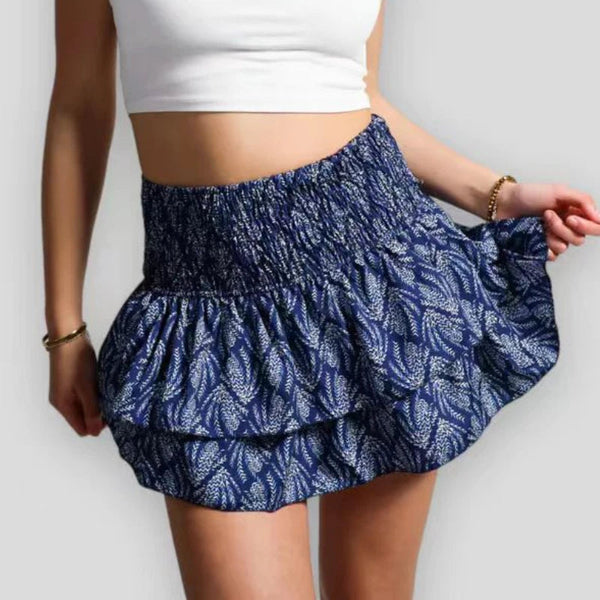 Jupe mini à volants pour femmes - imprimé bohème avec taille froncée